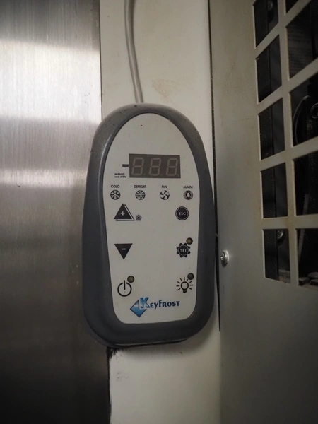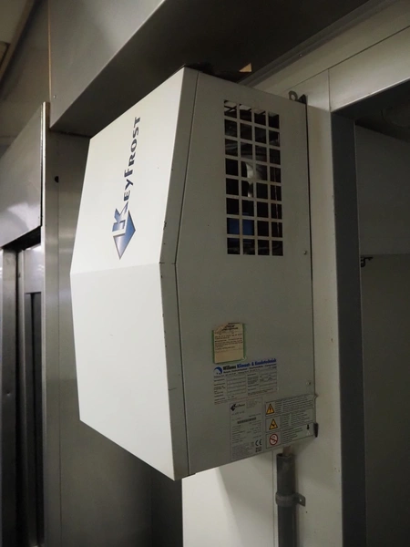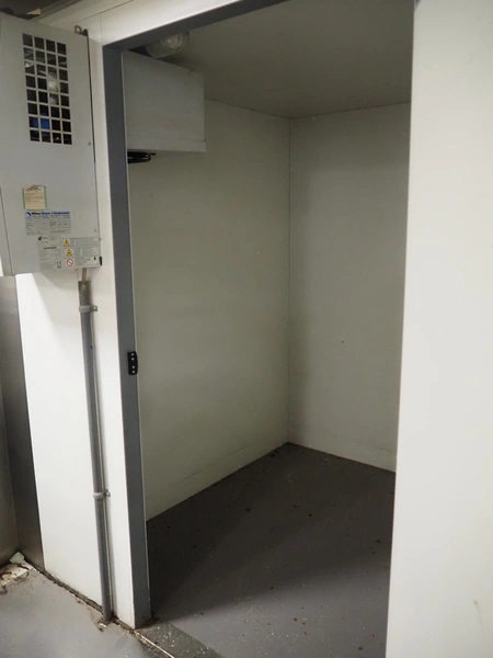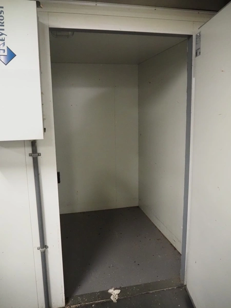 Cooling cell with Keyfrost wall mounted cooling unit, inside dimensions: 1700 mm x 1760 mm x 2100 mm, Keyfrost cooling unit, model: KBF 14 NE, serial number: 00103719, year of construction: 2020, 230 V, 1 Ph, 50 Hz, 6.6 A, 1.3 kW, 26 bar, weight: 60 kg, total dimensions: 2200 mm x 1850 mm x 2180 mm.