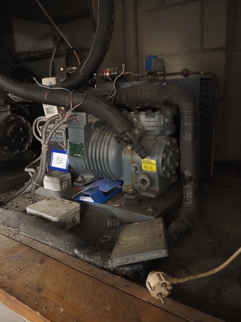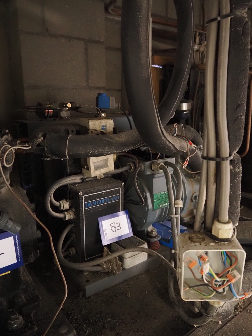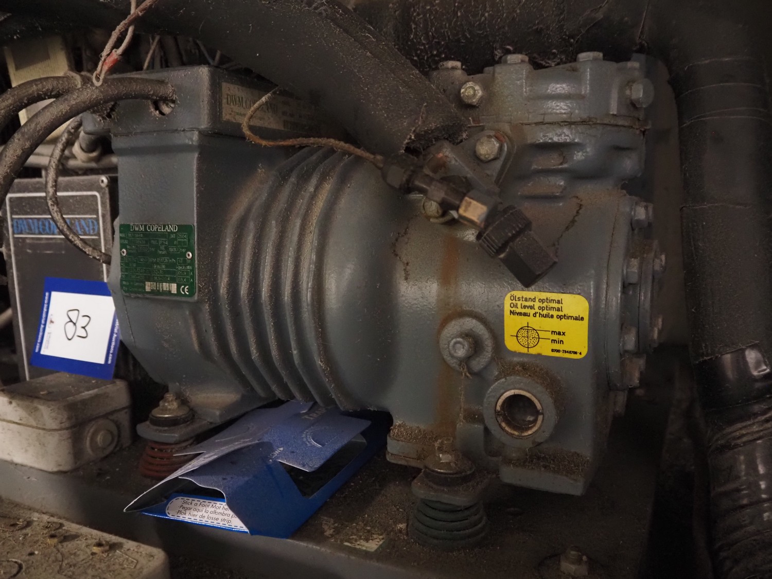 DWM Copeland cooling compressor, model: DKLP-15X-FWL, number: 2138938, year of construction: 2004, 220/240 V, 3 Ph, 50 Hz, 05.9 A, dimensions: 700 mm x 650 mm x 440 mm.