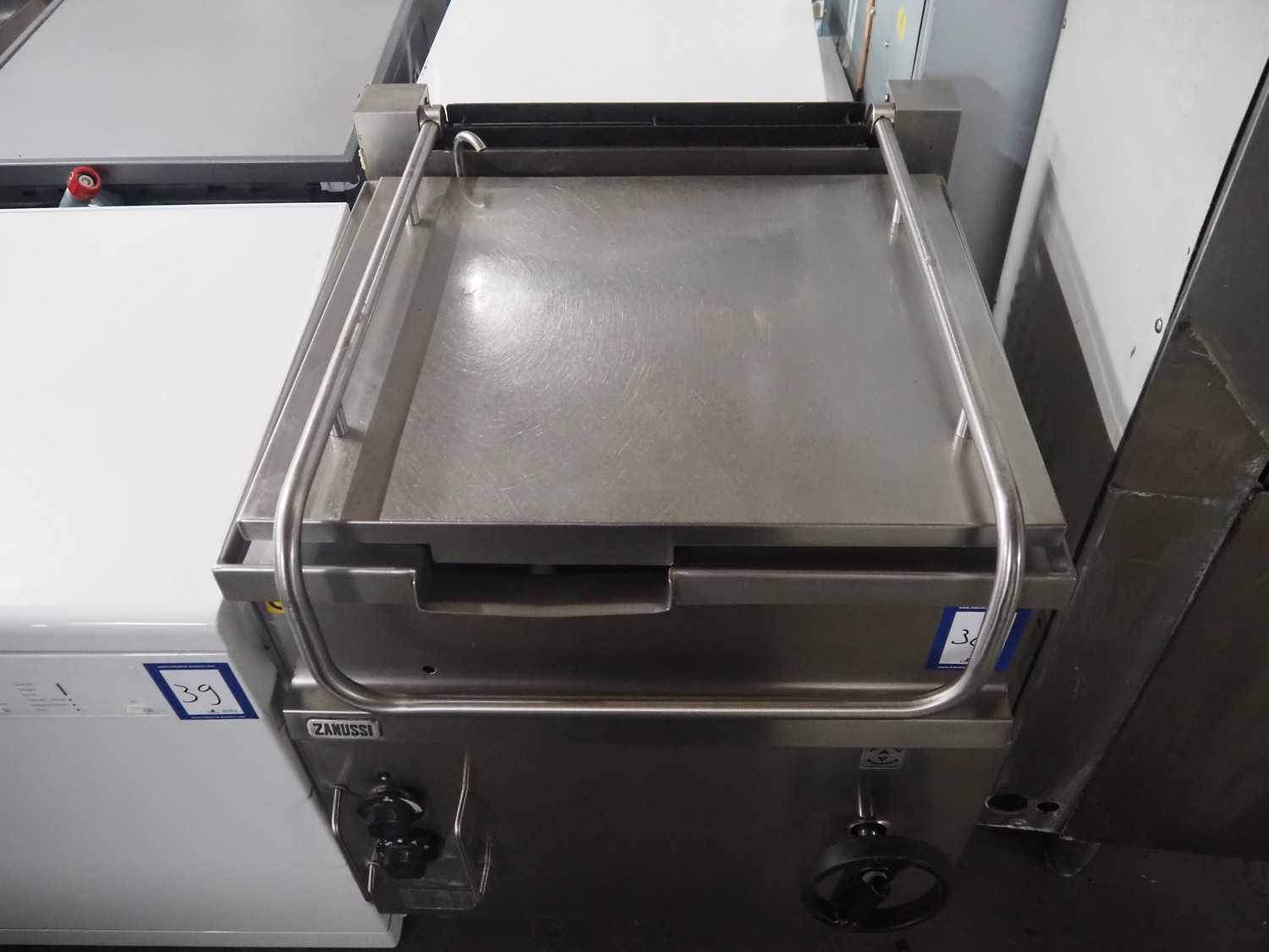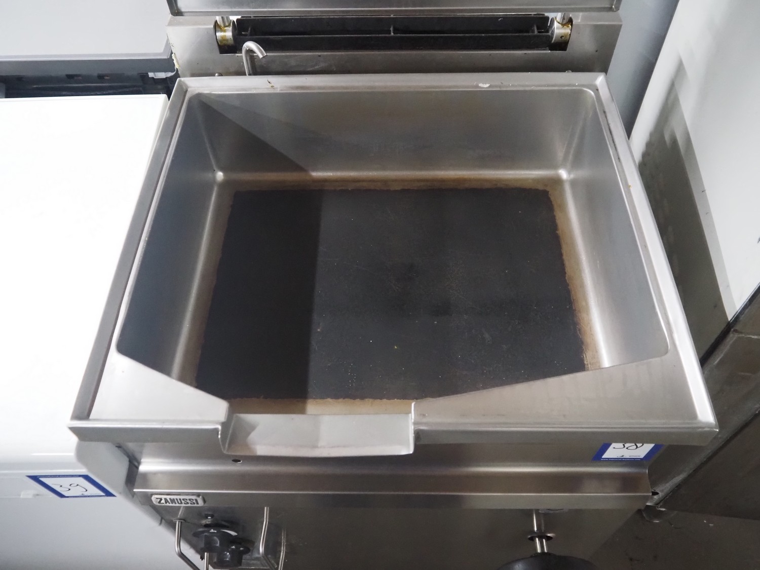 Zanussi braising pan, model: MBR/G2FM, serial number: 03500001, year of construction: 2000, gas heated, inside dimensions: 630 mm x 460 mm x 170 mm, total dimensions: 750 mm x 700 mm x 970 mm.