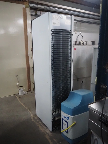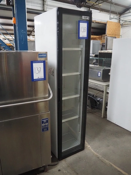 Saro Gastro-Products GmbH refrigerator, model: SK 301, serial number: 23104415, 220-240 V, 50 Hz, 1 A, 165 W, refrigerant: R600A/0.060 kg, weight: 71 kg, 5 floors, floor dimensions: 460 mm x 350 mm, total dimensions: 680 mm x 450 mm x 1890 mm.