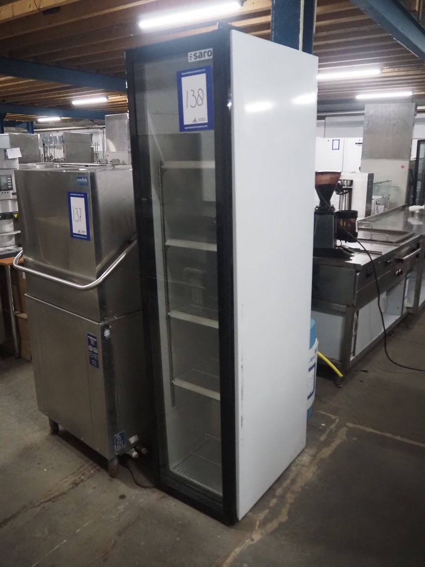 Saro Gastro-Products GmbH refrigerator, model: SK 301, serial number: 23104415, 220-240 V, 50 Hz, 1 A, 165 W, refrigerant: R600A/0.060 kg, weight: 71 kg, 5 floors, floor dimensions: 460 mm x 350 mm, total dimensions: 680 mm x 450 mm x 1890 mm.