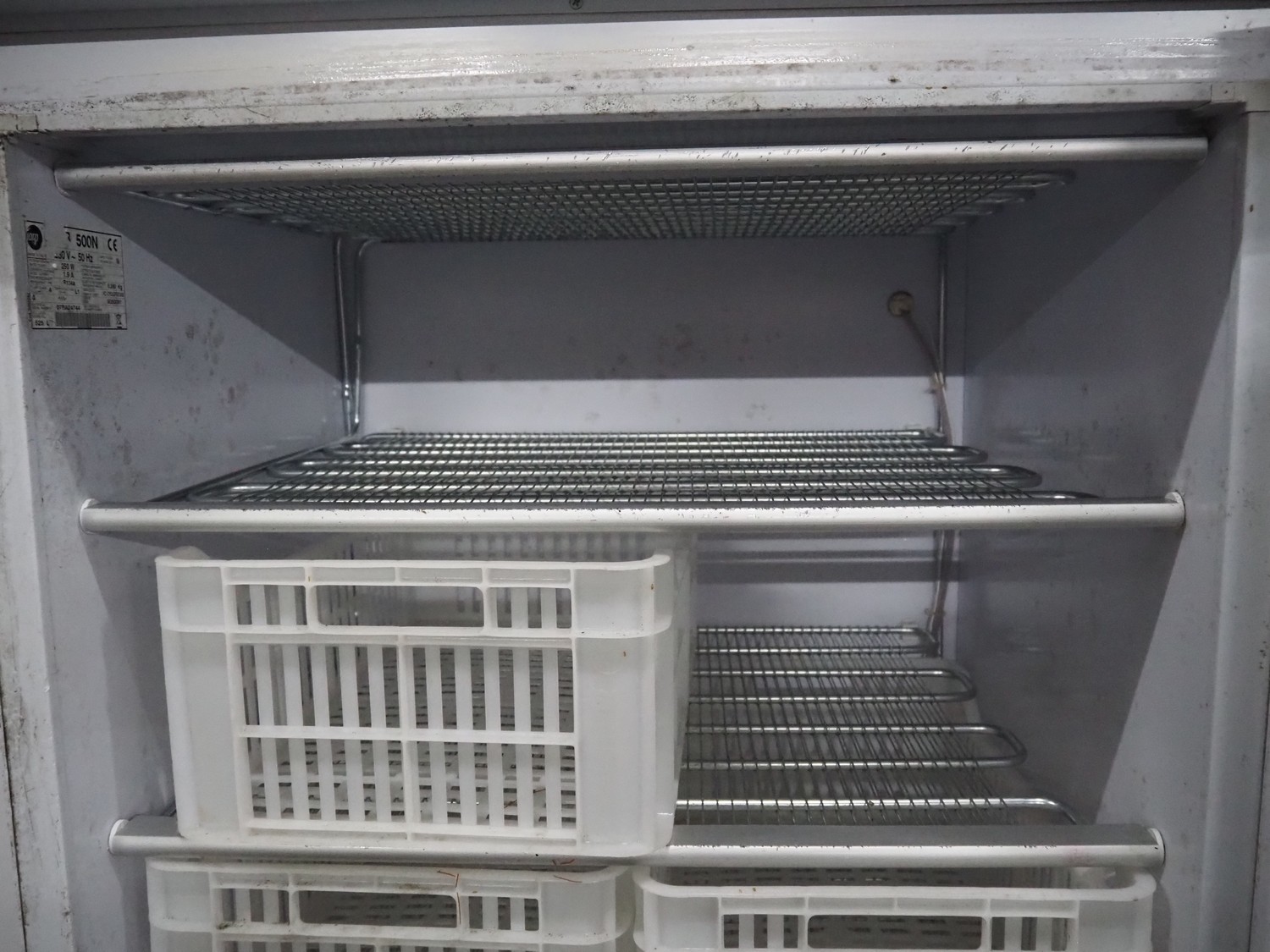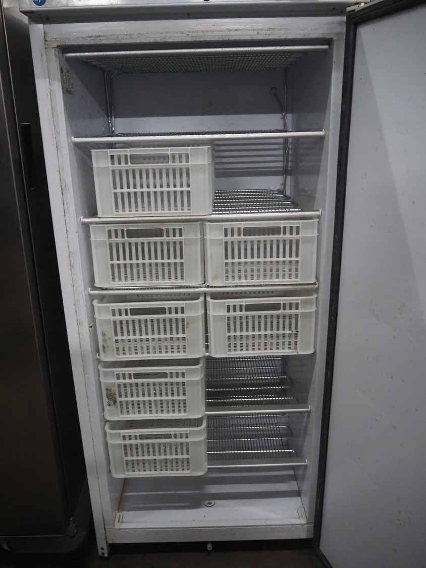 Iarp refrigerator, 230 V, 50 Hz, 1.9 A, 250 W, refrigerant: R134A/0.260 kg, volume: 525 liter, 6 floors, floor dimensions: 650 mm x 500 mm, total dimensions: 770 mm x 760 mm x 1700 mm. Including 7 plastic crates, dimensions: (7x) 500 mm x 300 mm x 180 mm.