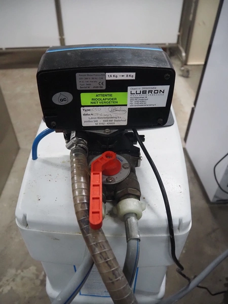 Compact water softener, type: 5600, serial number: J045196, 220/240 V, 50 Hz, 3 W, dimensions: 600 mm x 300 mm x 1100 mm.