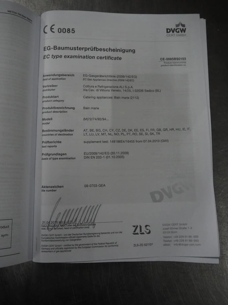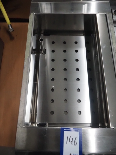 Metos au-bain marie, inside dimensions: 500 mm x 300 mm x 130 mm, total dimensions: 760 mm x 400 mm x 930 mm.