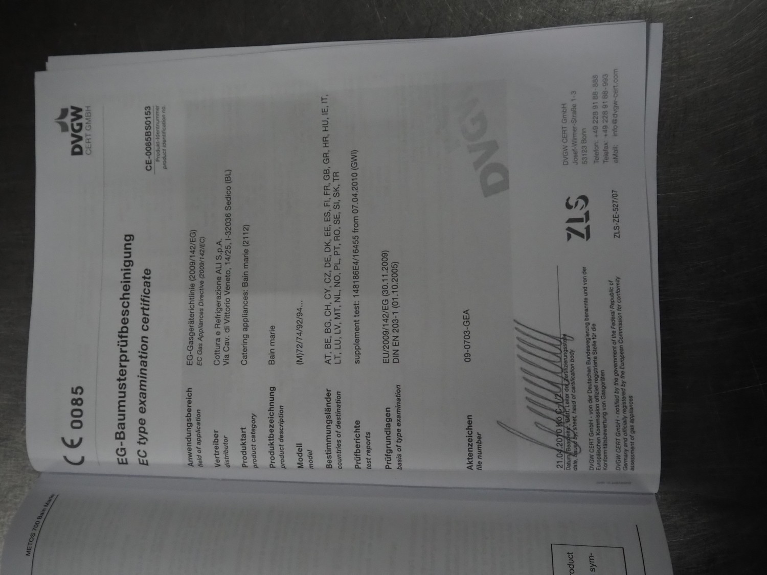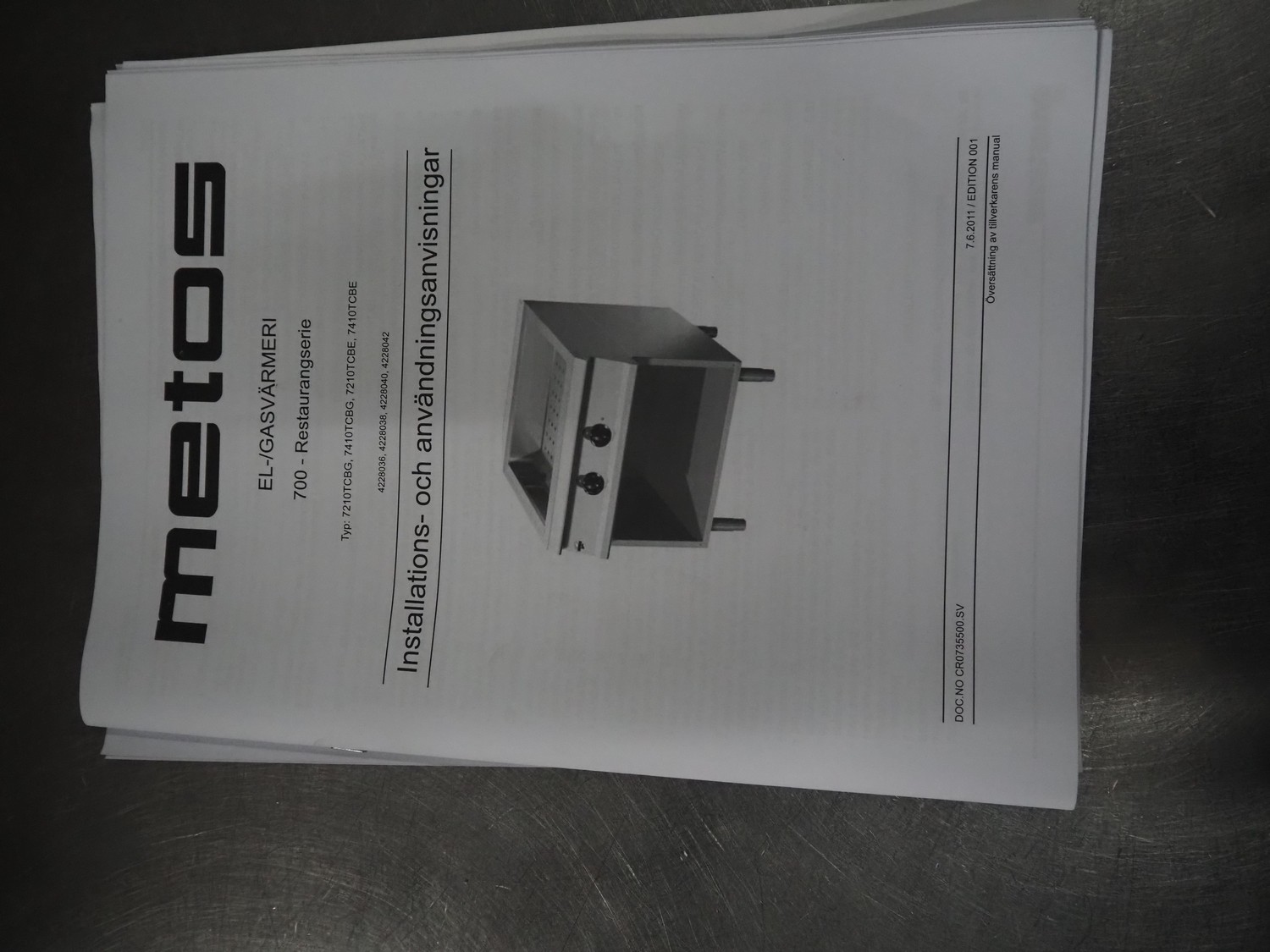 Metos au-bain marie, inside dimensions: 500 mm x 300 mm x 130 mm, total dimensions: 760 mm x 400 mm x 930 mm.
