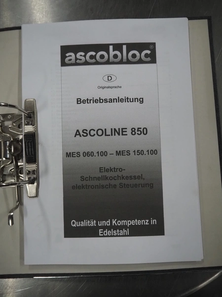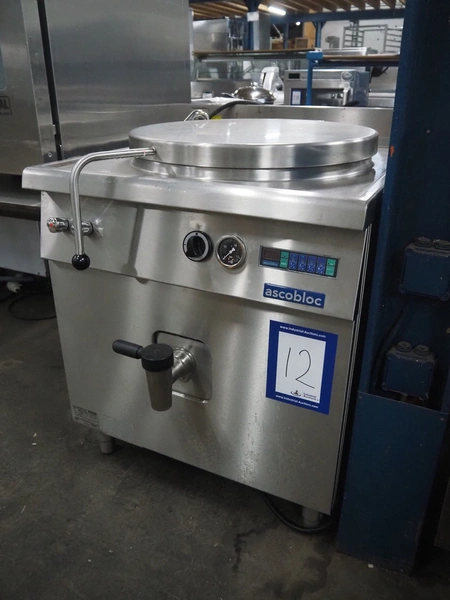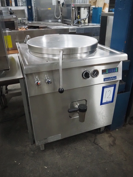Ascobloc Gastro-Gerätebau GmbH cooking vessel, model: MES 100.100, serial number: 0043, year of construction: 2019, 230/400 V, 3 Ph, 50/60 Hz, 18.5 kA, inside dimensions: Ø 600 mm x 450 mm, total dimensions: 900 mm x 840 mm x 1000 mm.