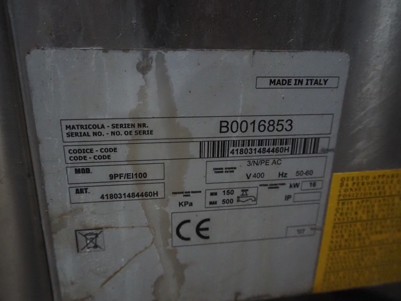 Metos cooking vessel, model: 9PF/EI100, serial number: B0016853, 400 V, 3 Ph, 50/60 Hz, 16 kW, inside dimensions: Ø 600 mm x 400 mm, total dimensions: 1000 mm x 800 mm x 1200 mm.
