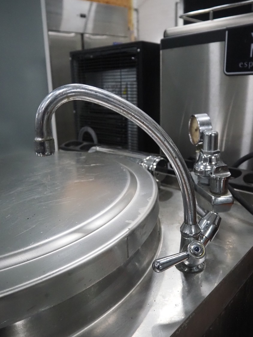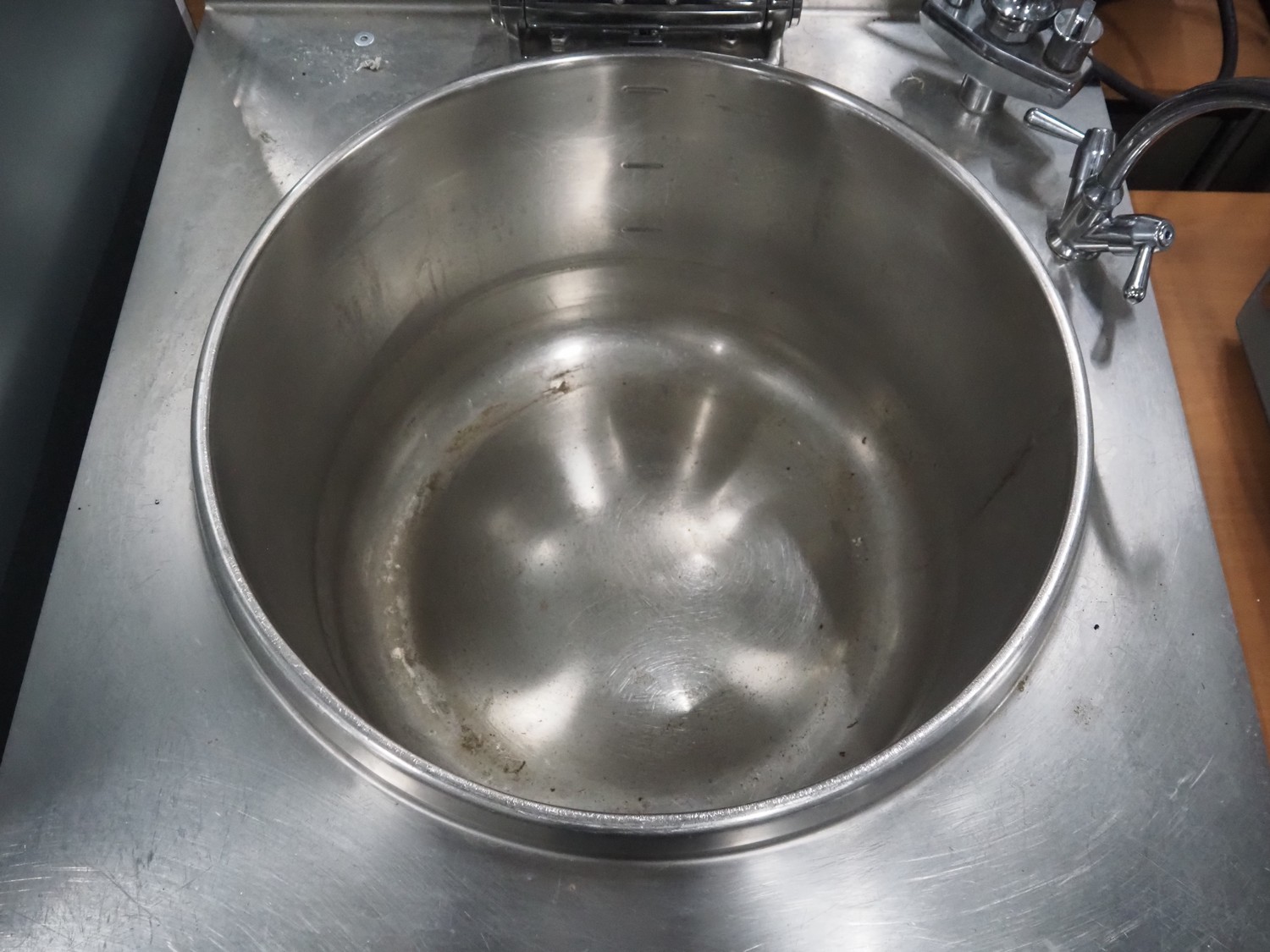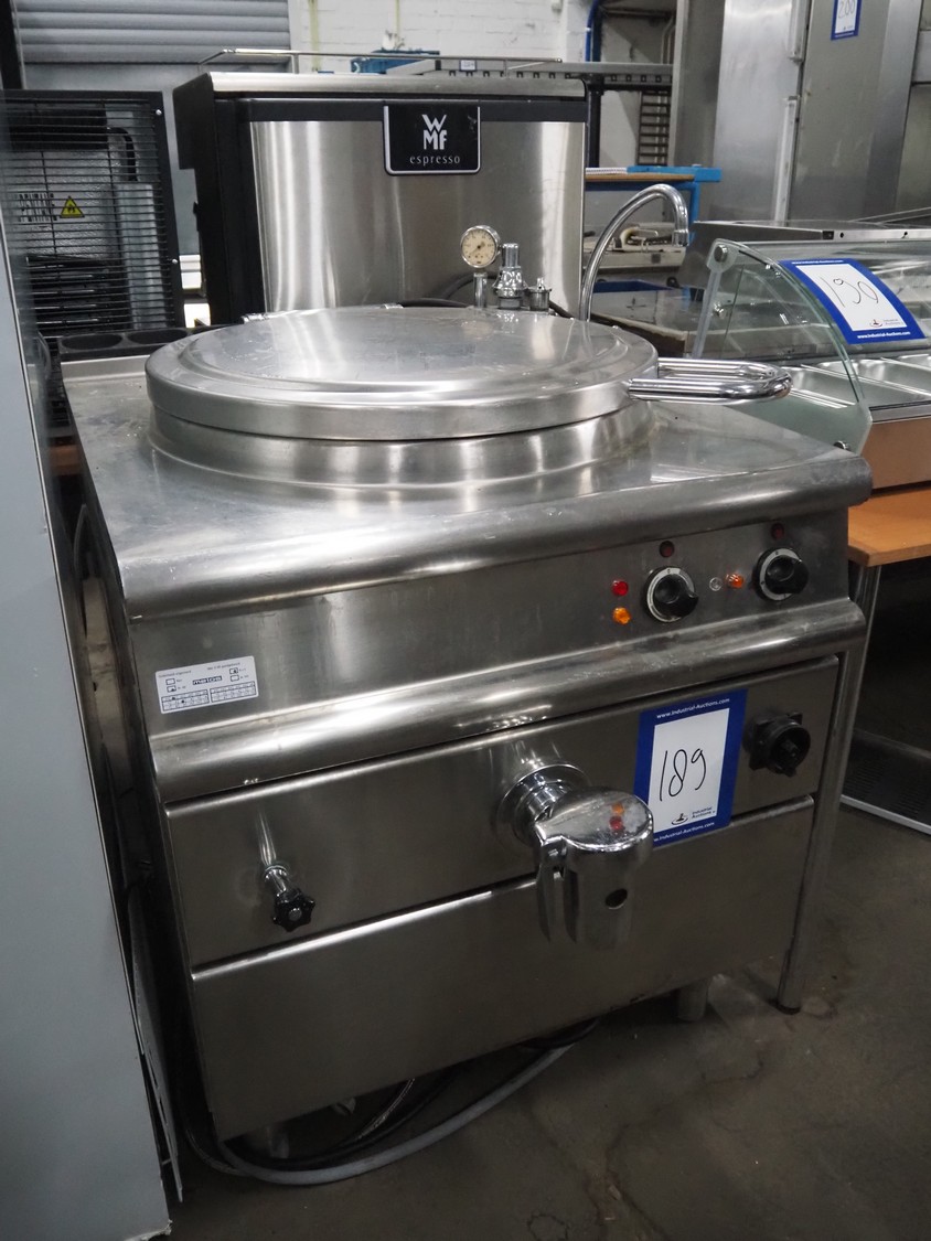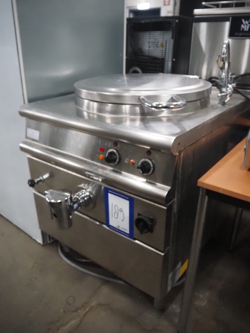 Metos cooking vessel, model: 9PF/EI100, serial number: B0016853, 400 V, 3 Ph, 50/60 Hz, 16 kW, inside dimensions: Ø 600 mm x 400 mm, total dimensions: 1000 mm x 800 mm x 1200 mm.