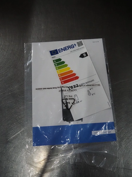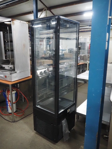 Saro Gastro-Products GmbH refrigerated showcase, model: SVEN, serial number: 1521005250247, year of construction: 25.05.2024, 220-240 V, 50 Hz, 2.3 A, 380 W, volume: 235 liter, refrigerant: R290/90 g, 4 floors, floor dimensions: (4x) 420 mm x 380 mm, total dimensions: 460 mm x 520 mm x 1700 mm.