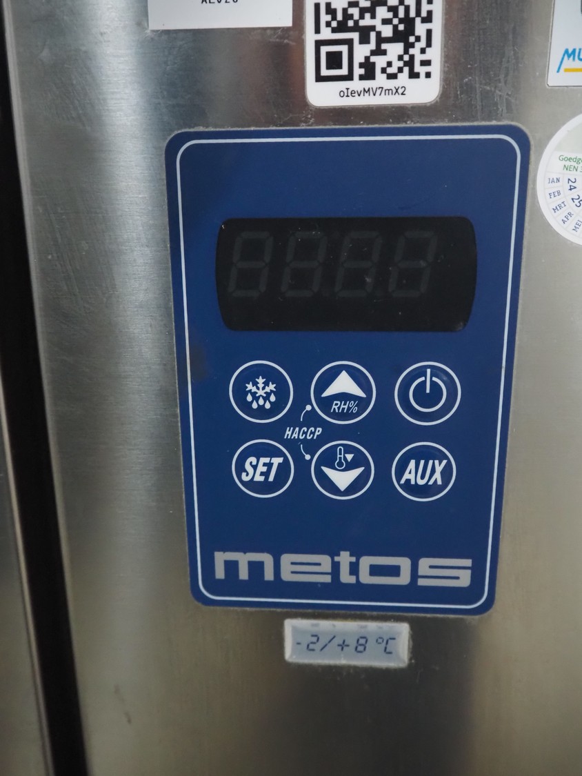 Metos refrigerated counter, type: KSTP03TN H71 C2, serial number: BN020247160, year of construction: 2018, 230 V, 50 Hz, 300 W, refrigerant: R452A/R404/R507/R449, 4 drawers, dimensions drawers: 560 mm x 300 mm x 300 mm, 2 floors, floor dimensions: 550 mm x 330 mm, total dimensions: 1550 mm x 700 mm x 900 mm. Missing top and external cool motor.