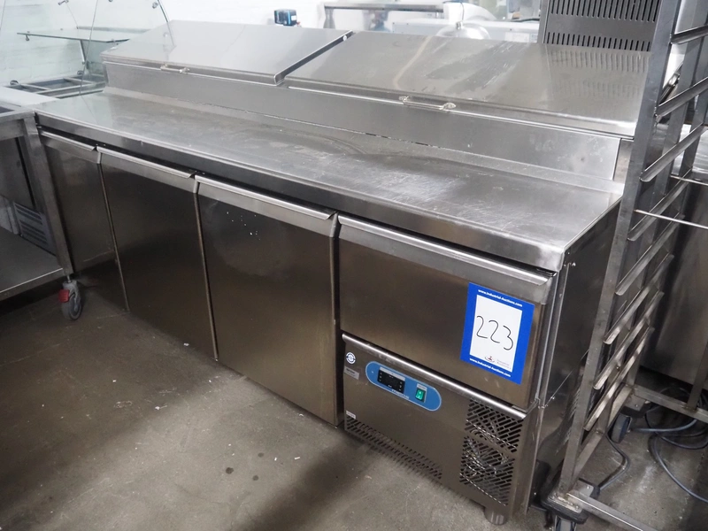 Metos refrigerated counter, dimensions: 14 floors, floor dimensions: 640 mm x 400 mm, total dimensions: 2170 mm x 800 mm x 1200 mm.