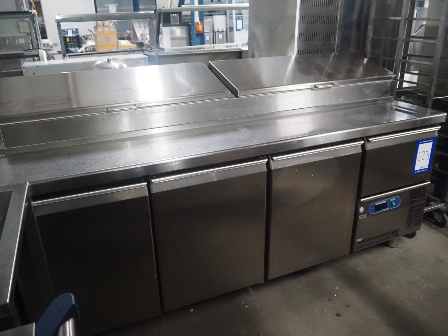 Metos refrigerated counter, dimensions: 14 floors, floor dimensions: 640 mm x 400 mm, total dimensions: 2170 mm x 800 mm x 1200 mm.