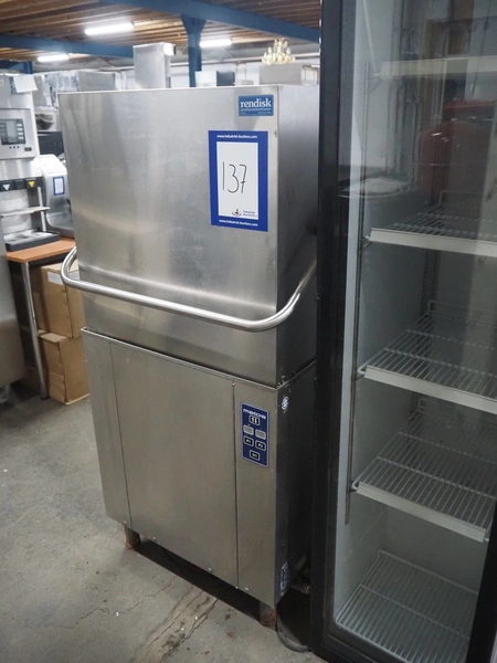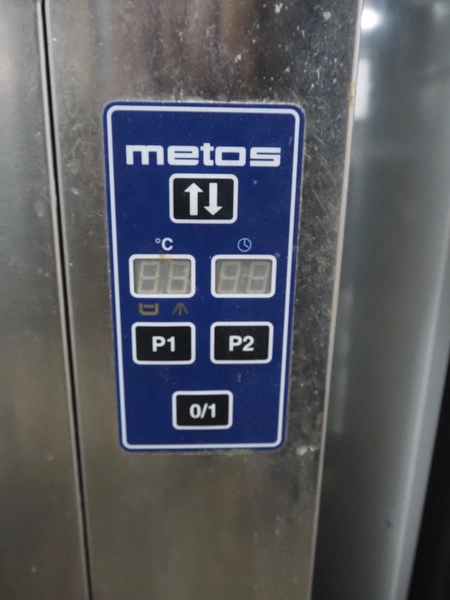 Metos dishwasher, type: WD-7 EH, number: 95520, year of construction: 1995, 400 V, 3 Ph, 50 Hz, 25 A, 13.1 kW, dimensions: 720 mm x 720 mm x 1470 mm. Including 2 plastic baskets.
