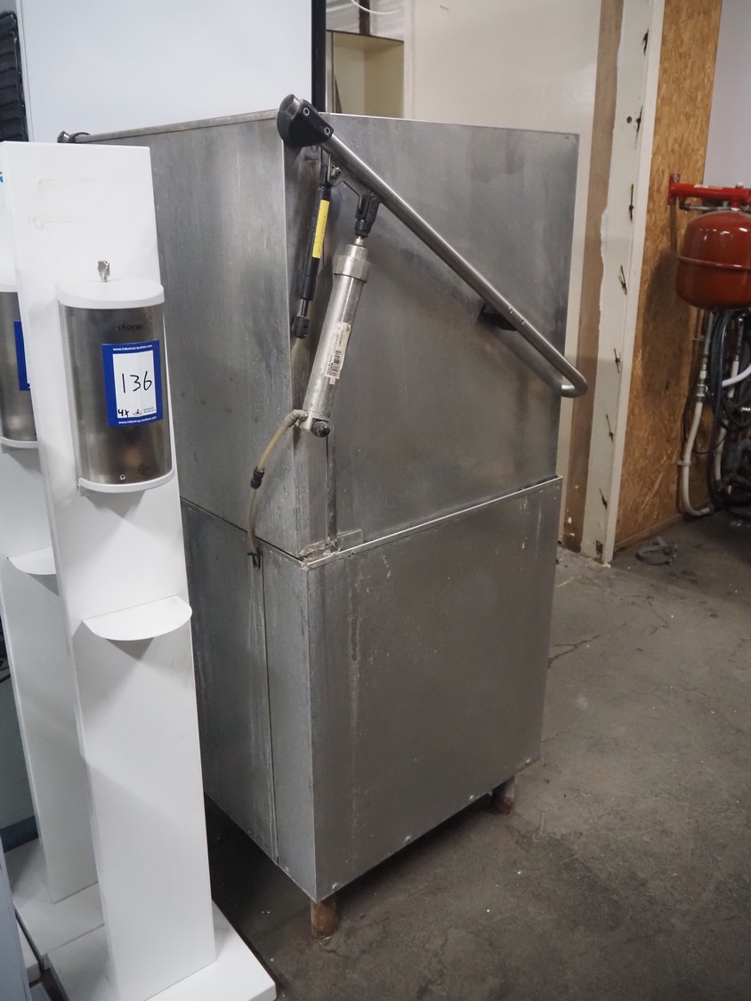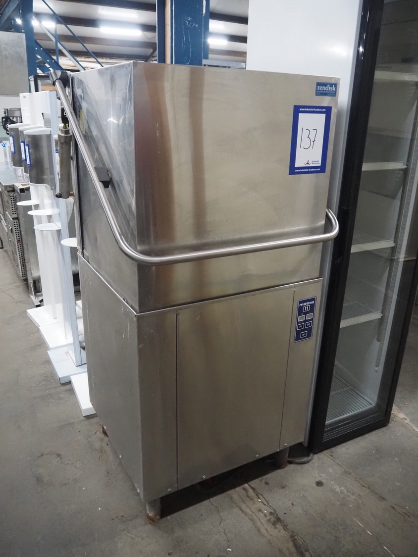Metos dishwasher, type: WD-7 EH, number: 95520, year of construction: 1995, 400 V, 3 Ph, 50 Hz, 25 A, 13.1 kW, dimensions: 720 mm x 720 mm x 1470 mm. Including 2 plastic baskets.