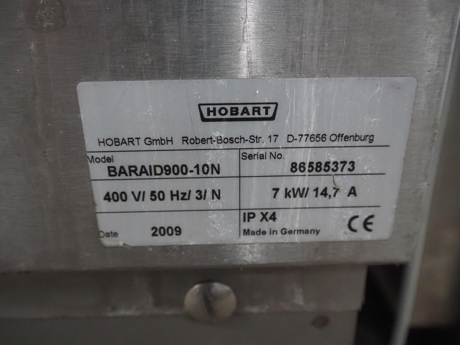 Hobart dishwasher, model: BARAID900-10N, serial number: 86585373, year of construction: 2009, 400 V, 3 Ph, 50 Hz, 14.7 A, 7 kW, dimensions: 800 mm x 750 mm x 1500 mm.