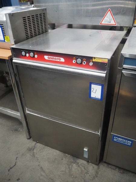 Angelo PO dishwasher, type: LF50E-ZMRO, serial number: AP/B12202, year of construction: 01-13, 400 V, 3 Ph, 50 Hz, 4900 W, inside dimensions: 500 mm x 500 mm, total dimensions: 630 mm x 580 mm x 860 mm.