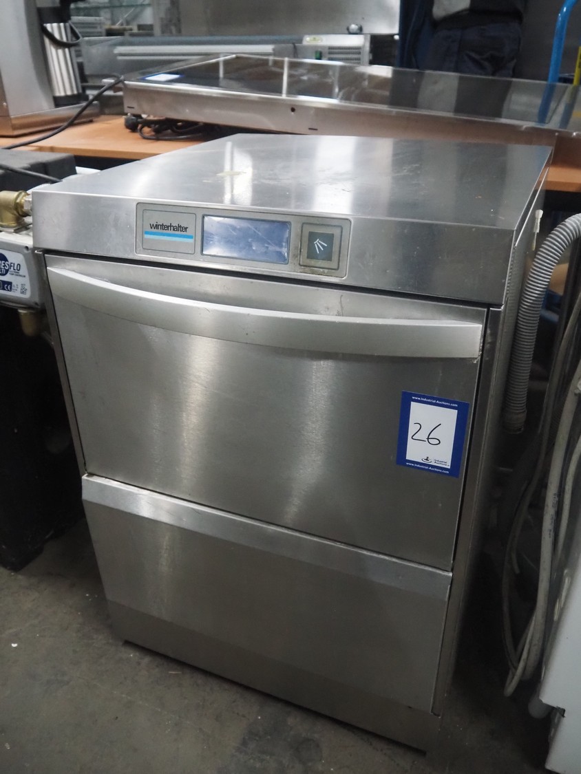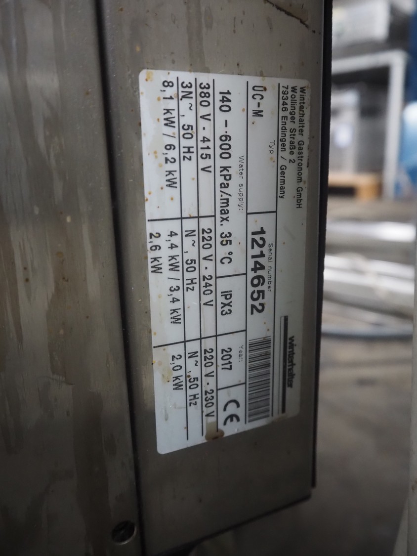 Winterhalter dishwasher, type: UC-M, serial number: 1214652, year of construction: 2017, 380-415 V, 3 Ph, 50 Hz, 8.1/6.2 kW, dimensions: 640 mm x 600 mm x 830 mm.
