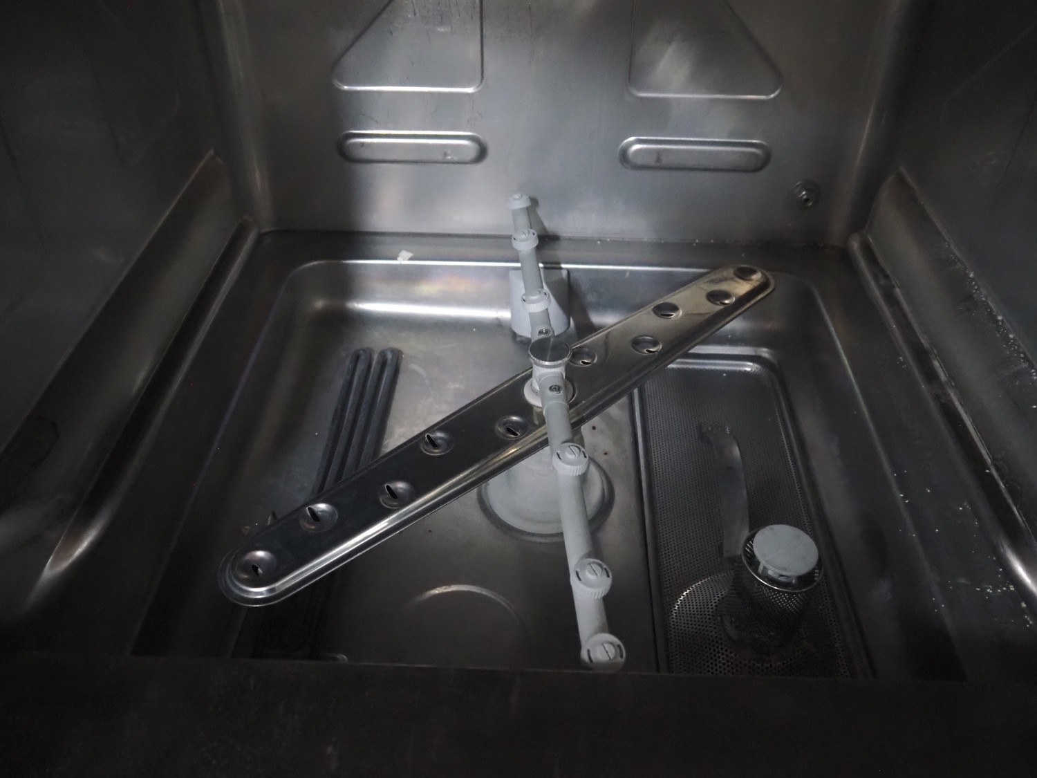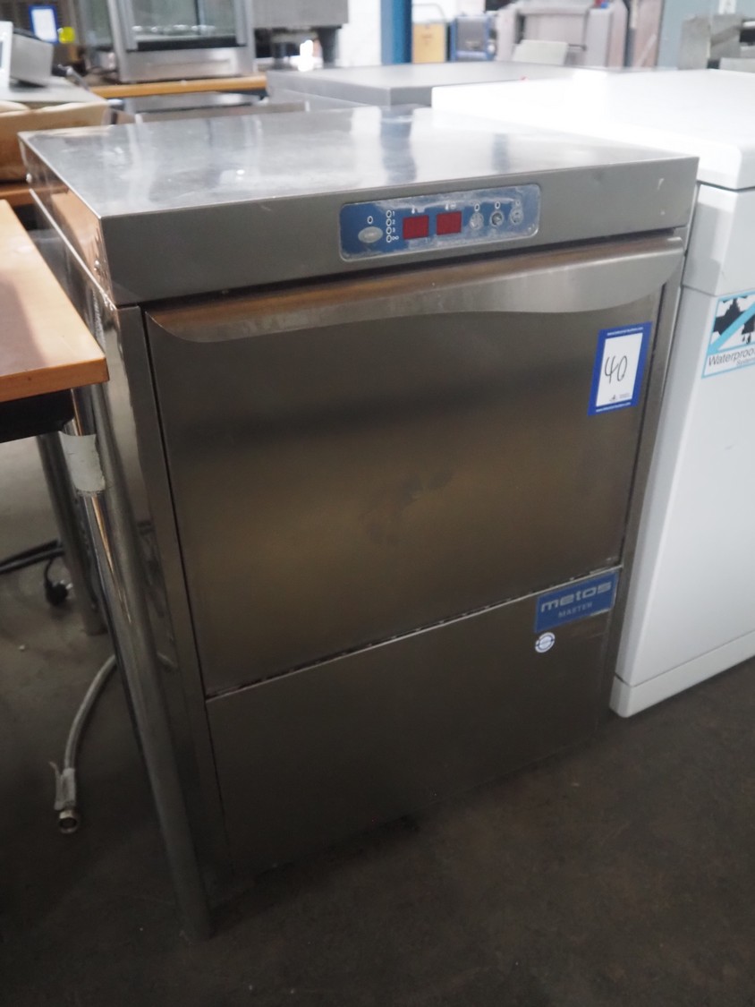 Metos dishwasher, type: DW124E, serial number: DWN1003896, 380-415 V, 3 Ph, 50 Hz, 15.1 A, 5150 W, dimensions: 640 mm x 600 mm x 860 mm.