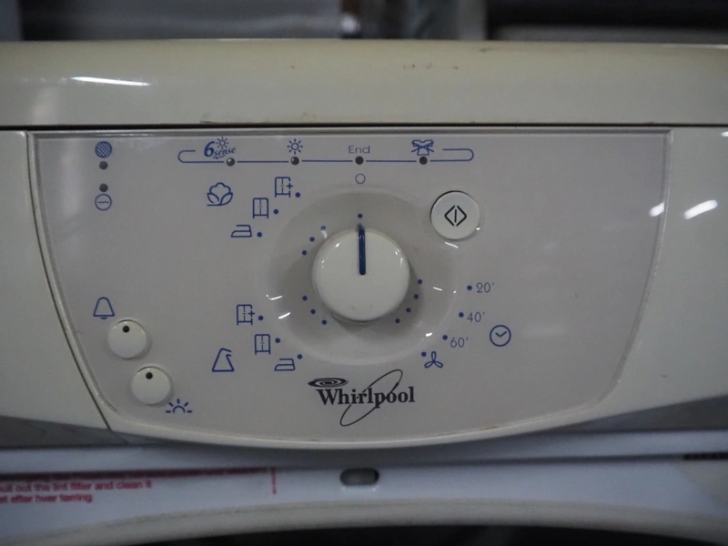 Whirlpool dryer, model: AWZ6812, number: 07 0322 502721, 220-240 V, 50 Hz, 10 A, 2200 W, dimensions: 600 mm x 600 mm x 840 mm.