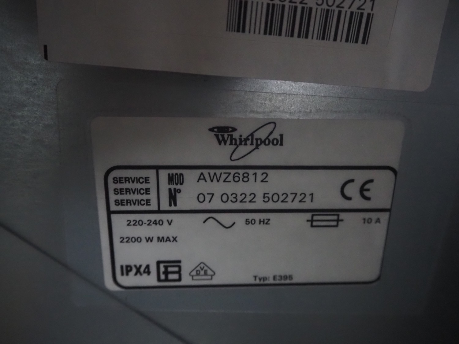 Whirlpool dryer, model: AWZ6812, number: 07 0322 502721, 220-240 V, 50 Hz, 10 A, 2200 W, dimensions: 600 mm x 600 mm x 840 mm.