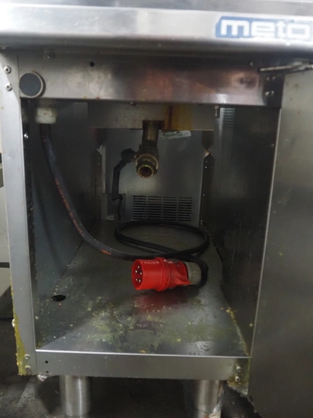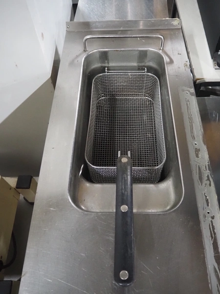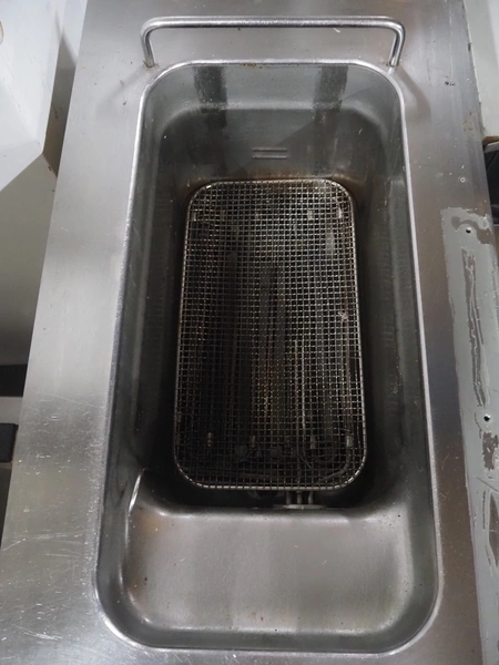 Metos fryer, electric heated, inside dimensions: 370 mm x 220 mm x 100 mm, total dimensions: 920 mm x 400 mm x 900 mm.