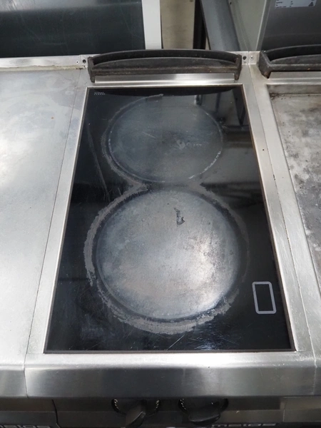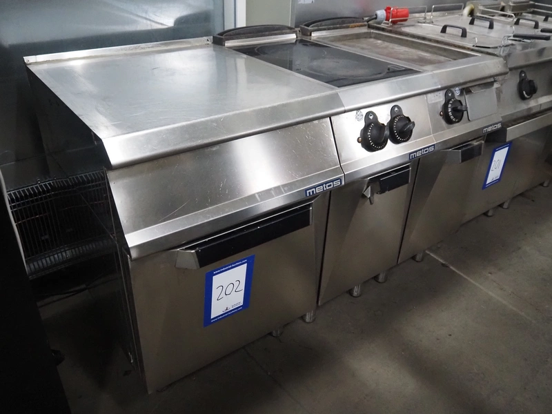 Metos grill and ceramic hob, dimensions grill: 530 mm x 340 mm x 40 mm, dimensionsceramic hob: 570 mm x 340 mm, total dimensions: 1400 mm x 770 mm x 960 mm.
