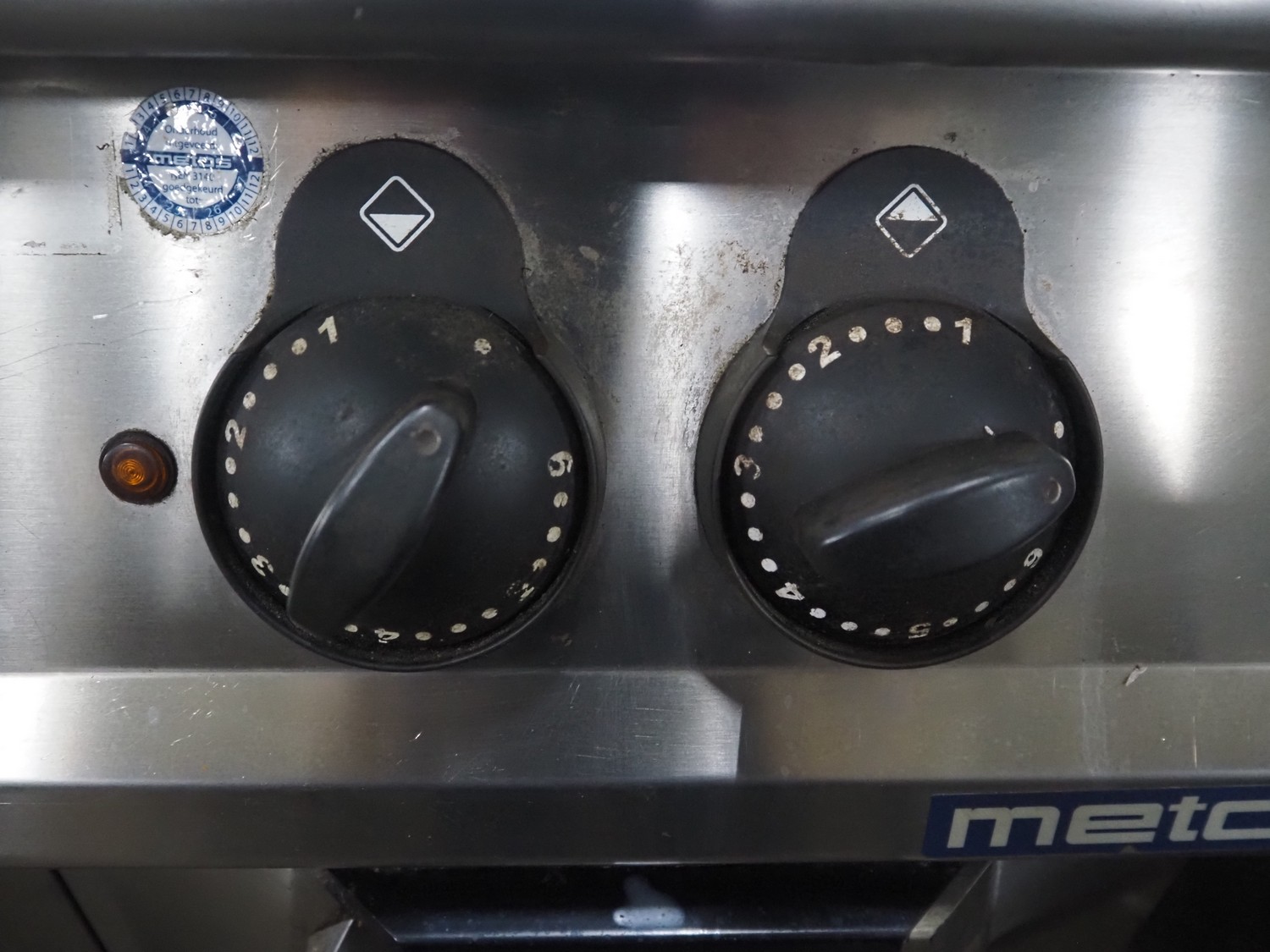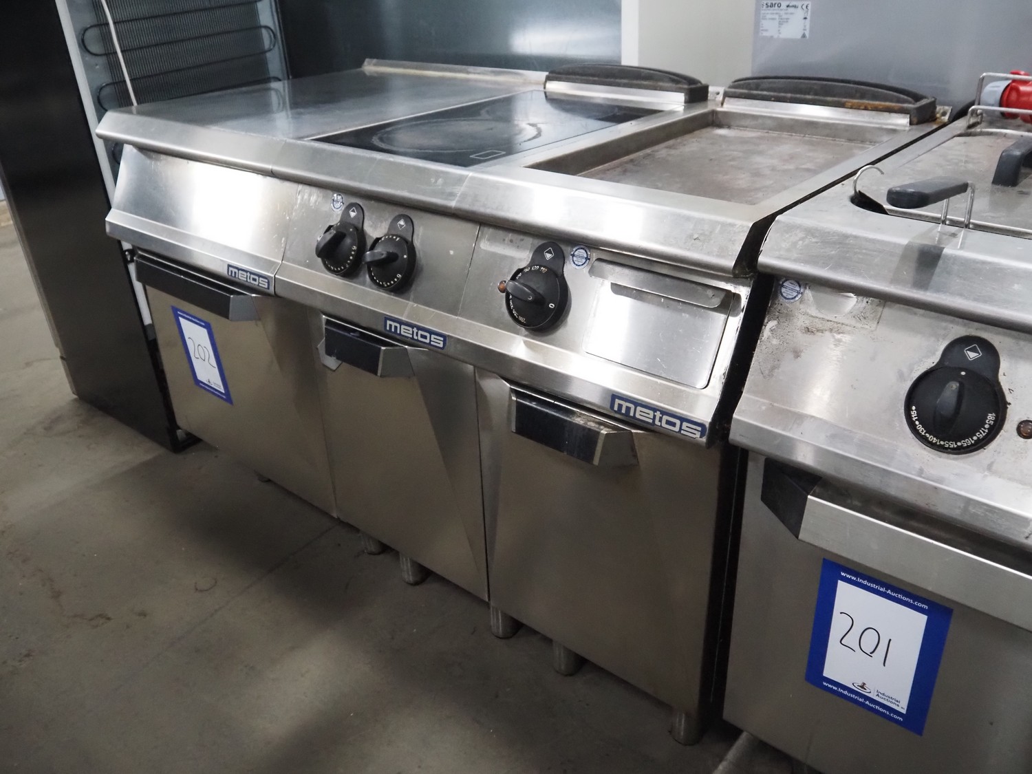 Metos grill and ceramic hob, dimensions grill: 530 mm x 340 mm x 40 mm, dimensionsceramic hob: 570 mm x 340 mm, total dimensions: 1400 mm x 770 mm x 960 mm.