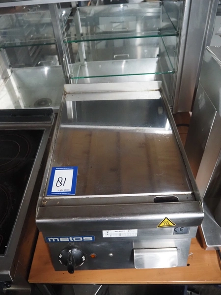 Metos grill plate, 400 V, 3 Ph, 50/60 Hz, dimensions grill: 520 mm x 400 mm, total dimensions: 620 mm x 400 mm x 300 mm.