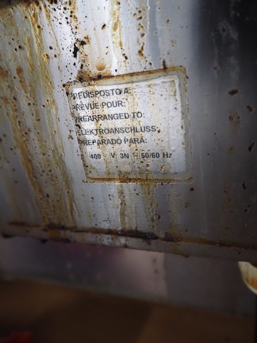 Metos grill plate, 400 V, 3 Ph, 50/60 Hz, dimensions grill: 520 mm x 400 mm, total dimensions: 620 mm x 400 mm x 300 mm.