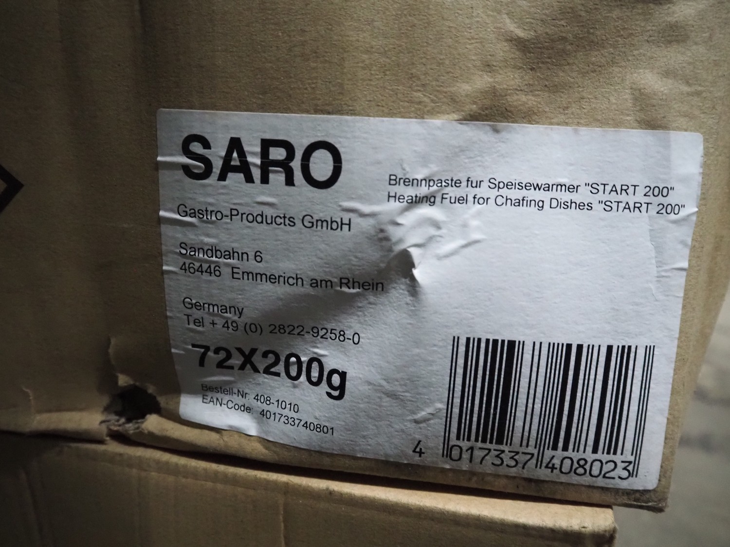 Saro Gastro-Products GmbH burning paste, model: START 200, 2 boxes, each box: 72 pieces, dimensions: (2x) 520 mm x 360 mm x 180 mm.
