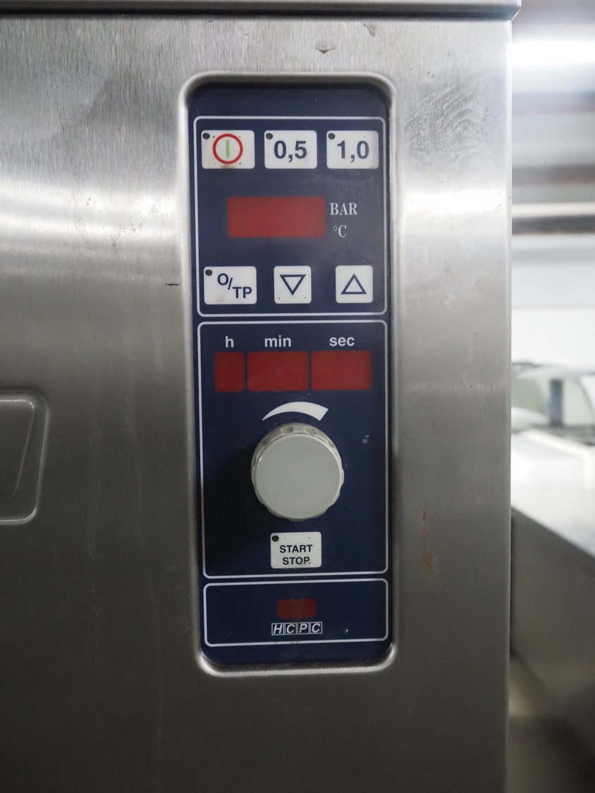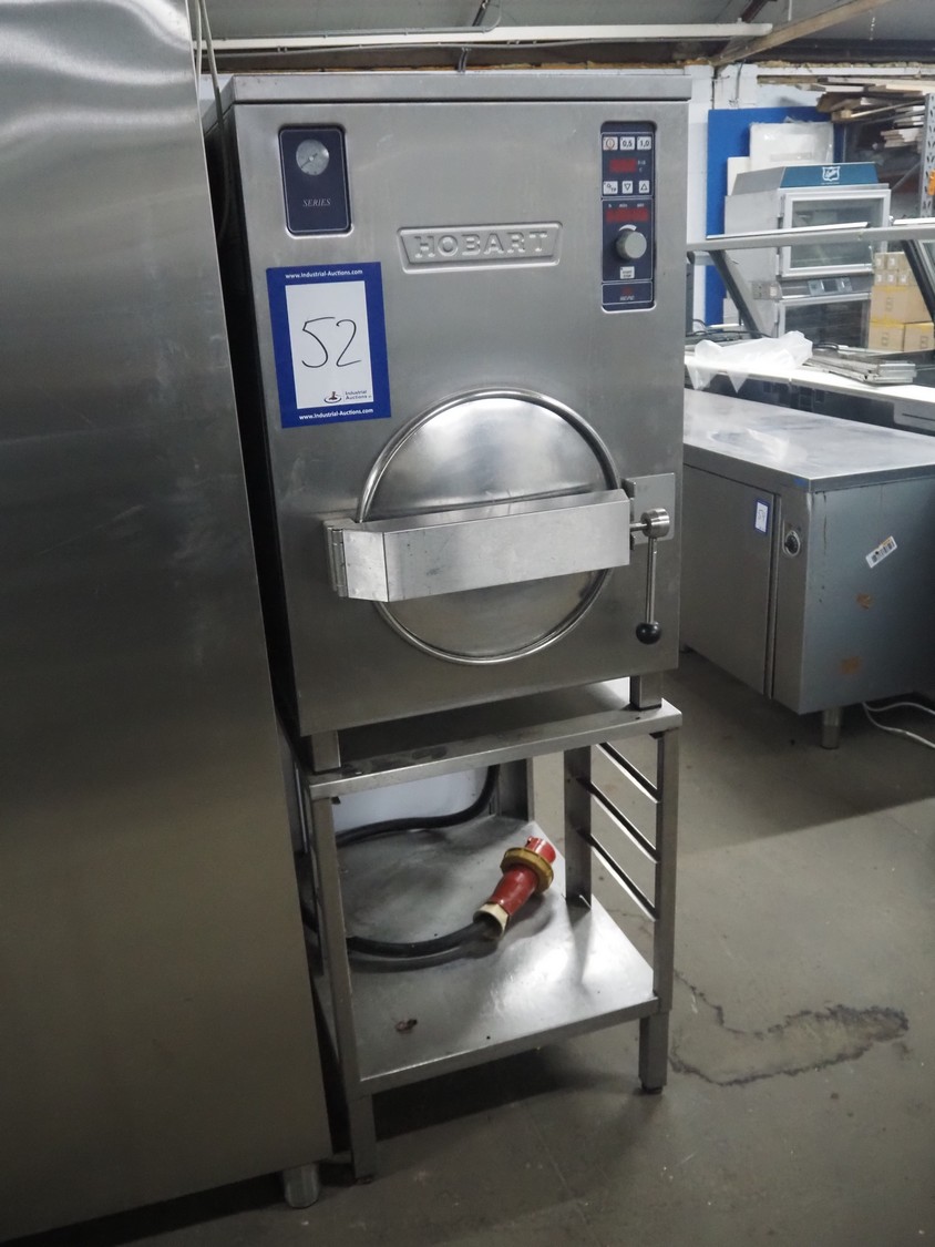 Hobart high speed cooker, model: 305G, serial number: 97-0205-236, year of construction: 2012, 400 V, 3 Ph, 50/60 Hz, 38.7 A, 26.7 kW, 4 floors, floor dimensions: 540 mm x 320 mm, inside dimensions: Ø 380 mm x 620 mm, total dimensions: 830 mm x 600 mm x 1690 mm.