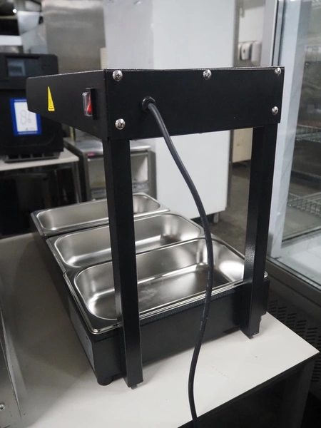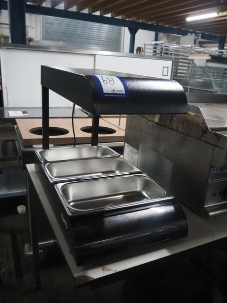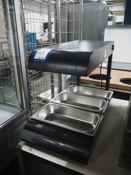 Saro Gastro-Products GmbH counter top food warmer, model: LT-03, 220-240 V, 50 Hz, 2.3 A, 530 W, weight: 9 kg, 3 gastronorm bins, bin dimensions: 300 mm x 170 mm x 60 mm, total dimensions: 650 mm x 330 mm x 440 mm.