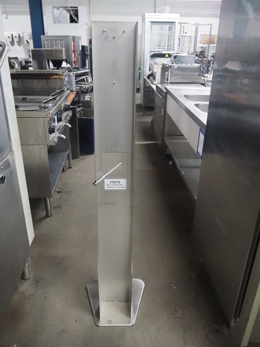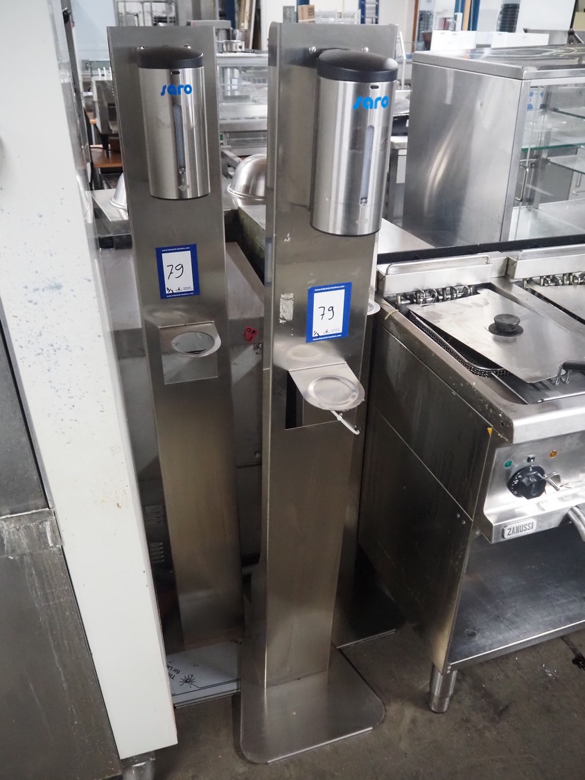 3 Saro Gastro-Products GmbH s/s disinfection dispensers, model: TOTEM0130088, dimensions: (3x) 360 mm x 330 mm x 1440 mm.