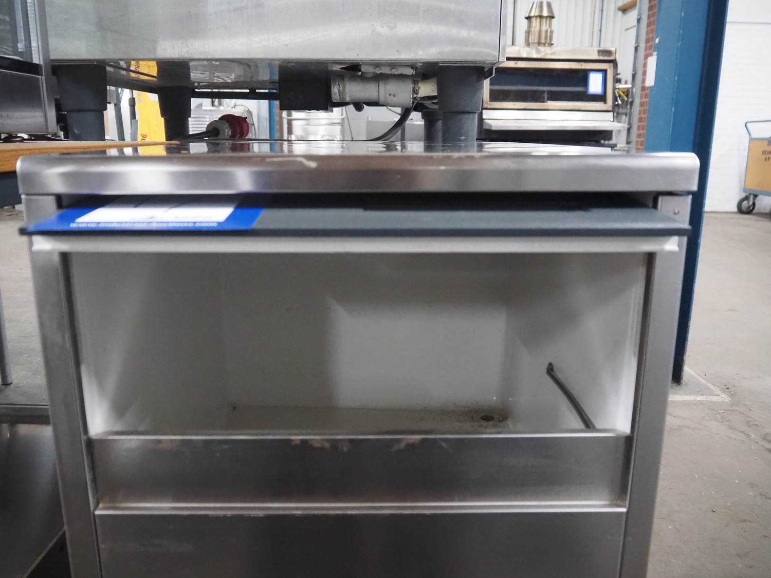 Metos crushed ice machine, model: GB 902 A-Q, number: 2010060496514, year of construction: 2010, 220-240 V, 50 Hz, 550 W, refrigerant: R404A/0.21 kg, inside dimensions: 440 mm x 450 mm x 250 mm, total dimensions: 660 mm x 500 mm x 770 mm.
