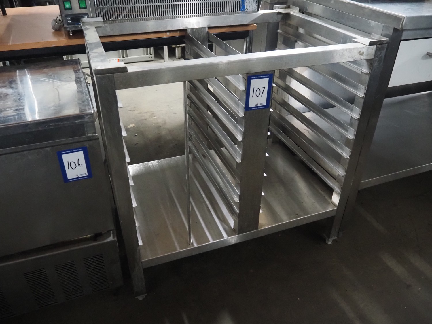 S/s rack for oven, 14 floors, floor dimensions: 560 mm x 330 mm, total dimensions: 830 mm x 560 mm x 800 mm.