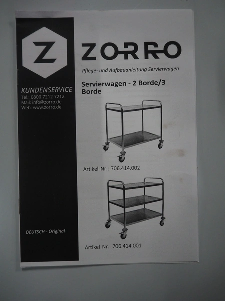 Zorro B.V. s/s serving trolley, 2 floors, maximum load: 50 kg, dimensions: 860 mm x 540 mm x 940 mm.