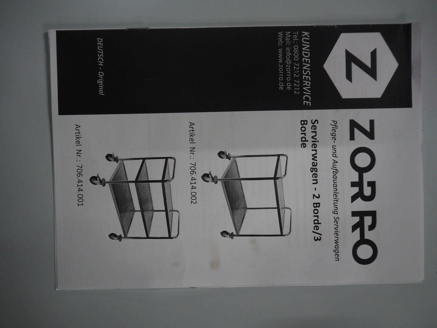 Zorro B.V. s/s serving trolley, 2 floors, maximum load: 50 kg, dimensions: 860 mm x 540 mm x 940 mm.
