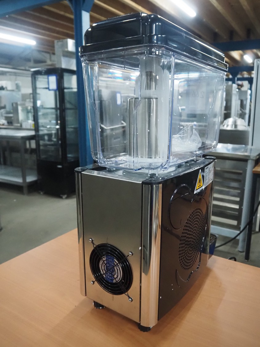 Saro Gastro-Products GmbH juice dispenser, model: 398-1005, serial number: KL24156AX2409D2436, year of construction: 2024.11, 220 V, 1 Ph, 50 Hz, 1.9 A, 0.29 kW, refrigerant: R290/0.030 kg, volume: 1.2 liter, dimensions: 430 mm x 220 mm x 650 mm.