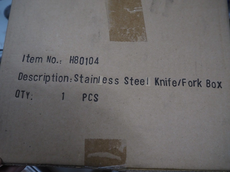 S/s knife/fork box, 4 holes, dimensions holes: (4x) Ø 100 mm x 100 mm, total dimensions: 330 mm x 280 mm x 200 mm.