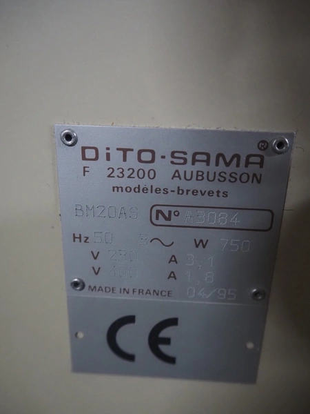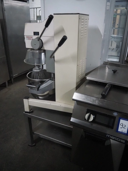 Dito Sama mixer with grinding head attachment, type: BM20AS, number: A3084, year of construction: 04/95, 230-400 V, 50 Hz, 3.1/1.8 A, 750 W, 400 V, 520 mm x 700 mm x 1420 mm. Including whisk, paddle and hook.