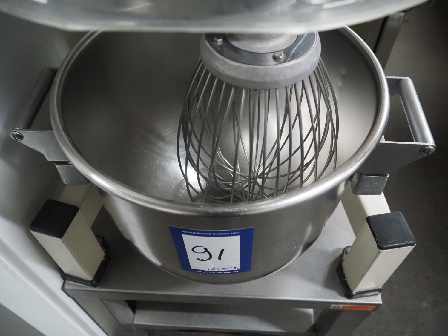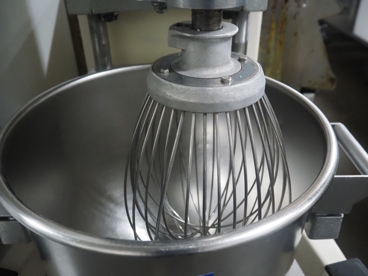 Dito Sama mixer with grinding head attachment, type: BM20AS, number: A3084, year of construction: 04/95, 230-400 V, 50 Hz, 3.1/1.8 A, 750 W, 400 V, 520 mm x 700 mm x 1420 mm. Including whisk, paddle and hook.