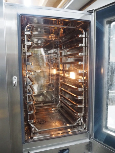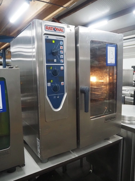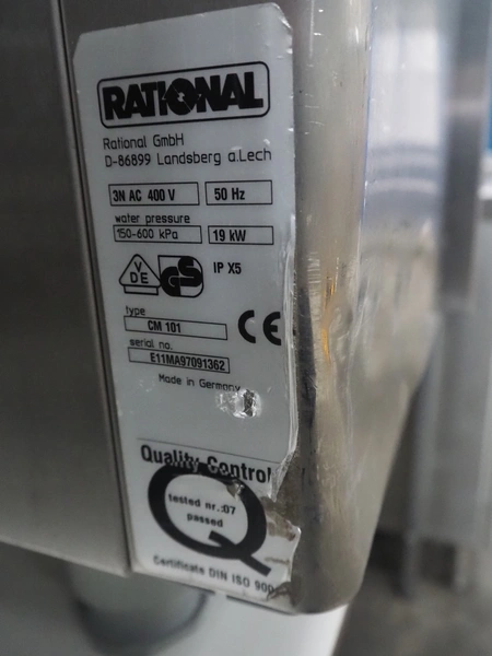 Rational combi steamer, type: CM 101, serial number: E11MA97091362, year of construction: 1997, 400 V, 3 Ph, 50 Hz, 19 kW, 10 floors, floor dimensions: (10x) 460 mm x 320 mm, total dimensions: 900 mm x 800 mm x 1090 mm.