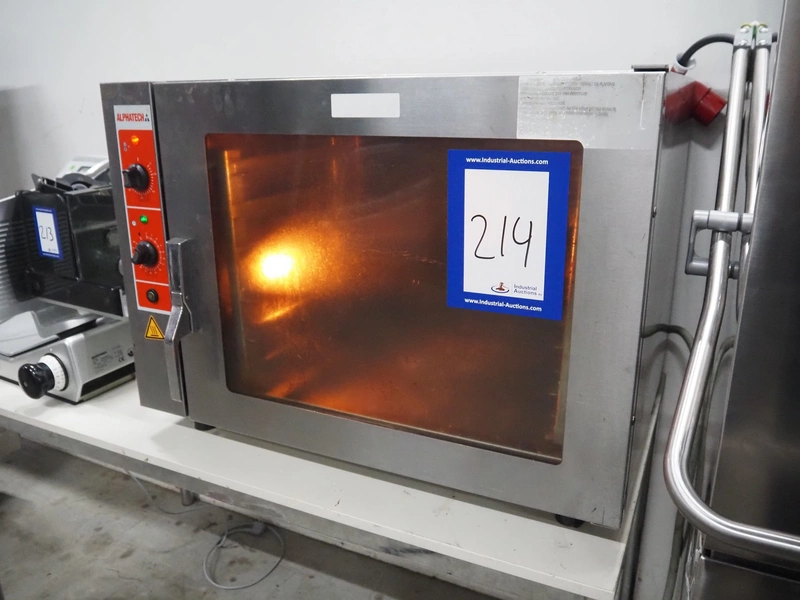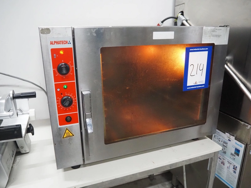 Alphatech combi steamer, type: A05RES, number: LA020035778, year of construction: 2006, 400 V, 3 Ph, 50 Hz, 6.25 kW, 6 floors, floor dimensions: 500 m x 360 mm, total dimensions: 800 mm x 600 mm x 600 mm.