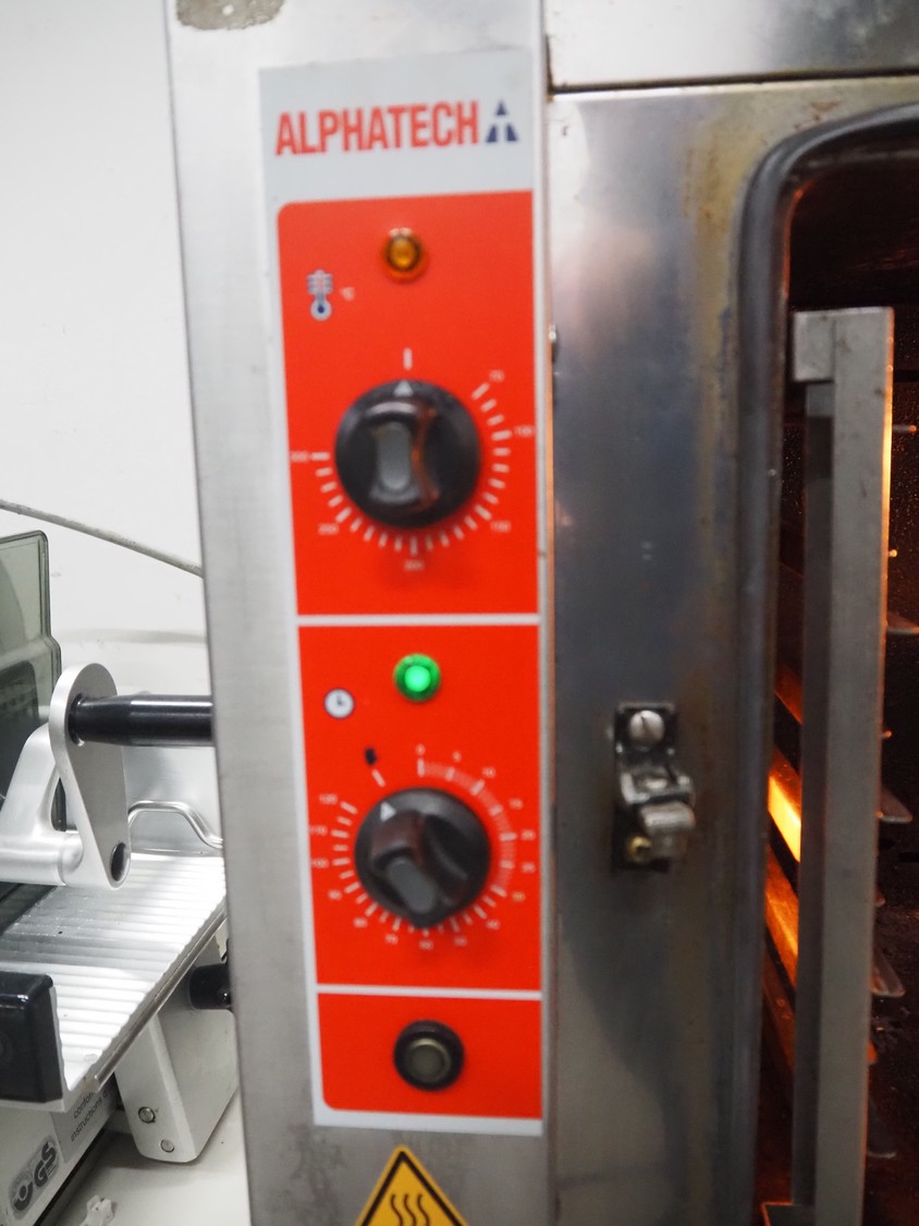 Alphatech combi steamer, type: A05RES, number: LA020035778, year of construction: 2006, 400 V, 3 Ph, 50 Hz, 6.25 kW, 6 floors, floor dimensions: 500 m x 360 mm, total dimensions: 800 mm x 600 mm x 600 mm.