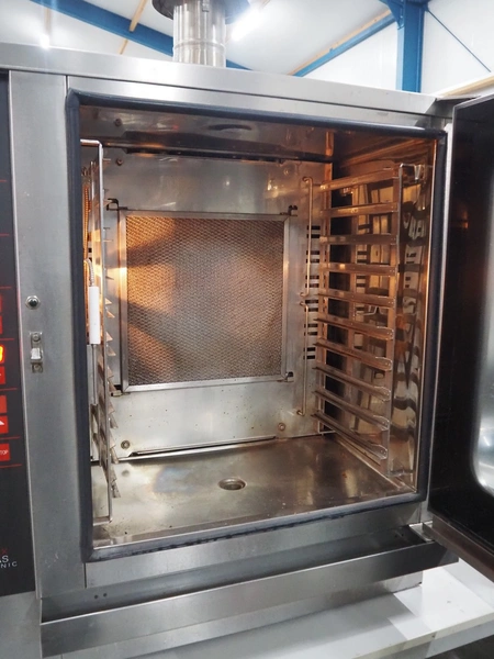 Eloma GmbH combi steamer, type: MMD 10-11 GAS, machine number: 144007 430, year of construction: 1996, 220 V, 1 Ph, 50 Hz, 0.3 kW, 10 floors, floor dimensions: 530 mm x 300 mm, total dimensions: 950 mm x 790 mm x 1500 mm.
