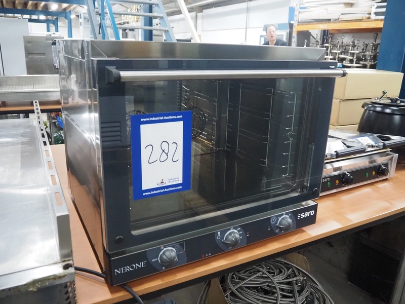 Saro Gastro-Products GmbH electric oven, model: FEMG04NEGNV, serial number: 202532943R, year of construction: 05-2025, 220-240 V, 1 Ph, 50/60 Hz, 350 W, i4 floors, floor dimensions: 540 mm x 300 mm, total dimensions: 700 mm x 670 mm x 600 mm.