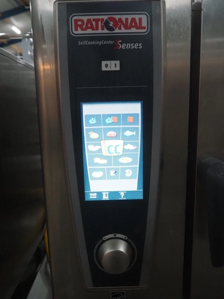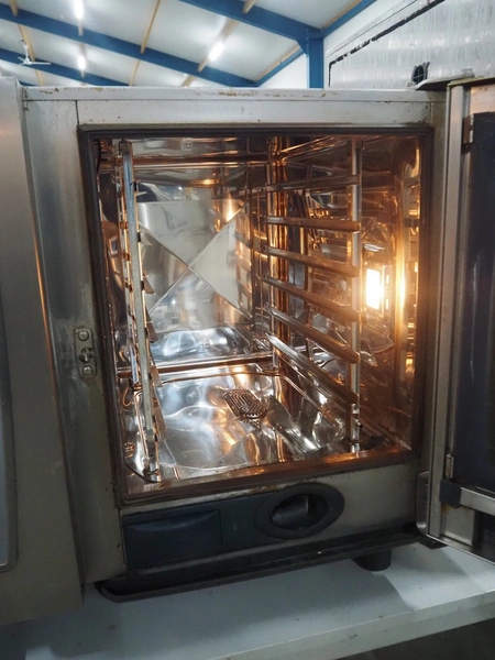 Rational combi steamer, type: 61G, serial number: G61SH15022446880, gas heated, 6 floors, floor dimensions: (6x) 540 mm x 330 mm, total dimensions: 850 mm x 800 mm x 800 mm.