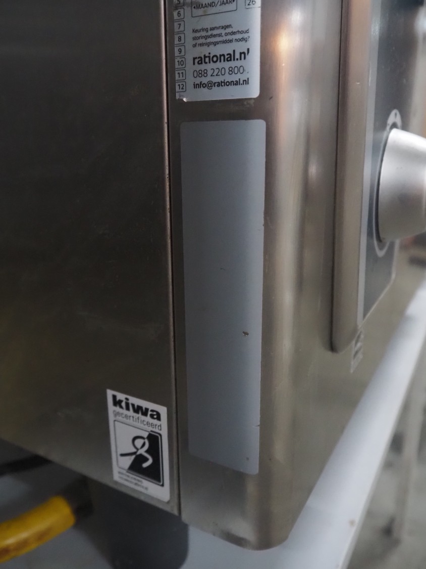 Rational combi steamer, type: 61G, serial number: G61SH15022446880, gas heated, 6 floors, floor dimensions: (6x) 540 mm x 330 mm, total dimensions: 850 mm x 800 mm x 800 mm.