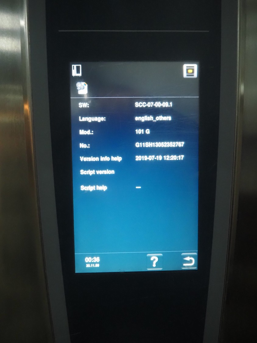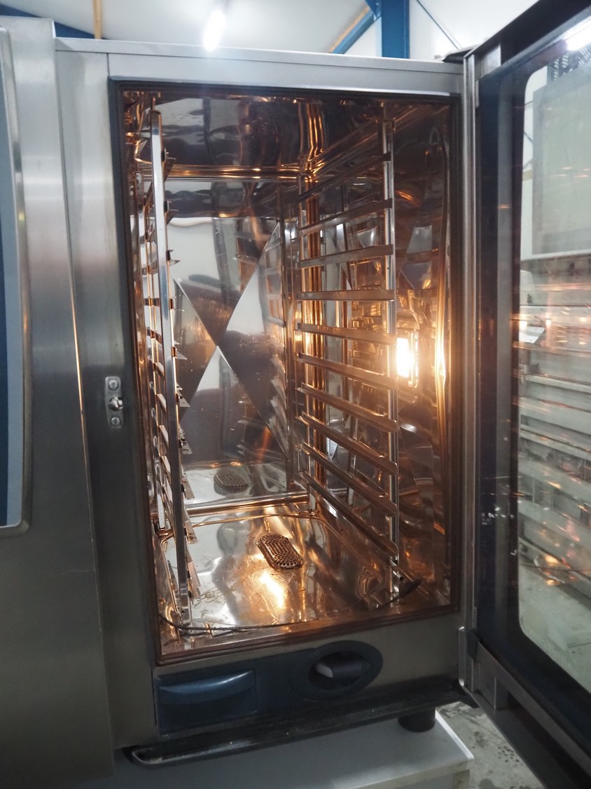 Rational combi steamer, type: Type is SCC WE 101G, serial number: G11SH13052352767, year of construction: 2013, 10 floors, floor dimensions: (10x) 540 mm x 330 mm, total dimensions: 850 mm x 800 mm x 1040 mm.