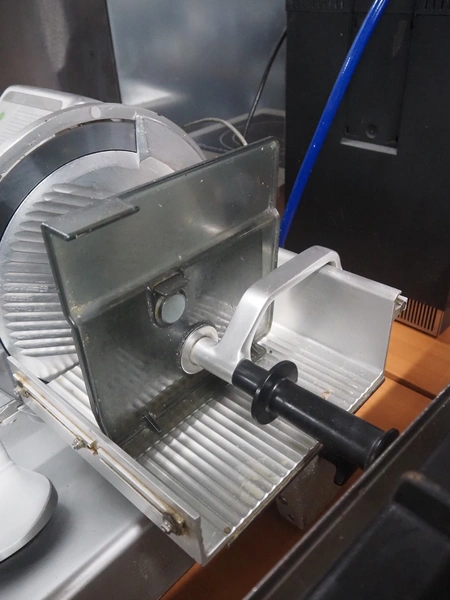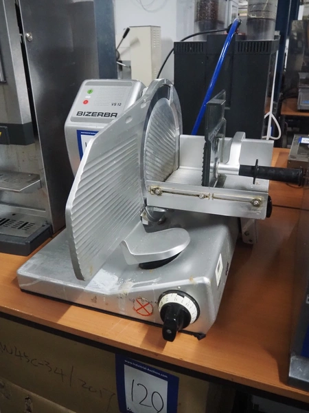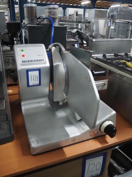 Bizerba slicer, model: VS 12, dimensions: 600 mm x 560 mm x 430 mm. Including knife sharpener.